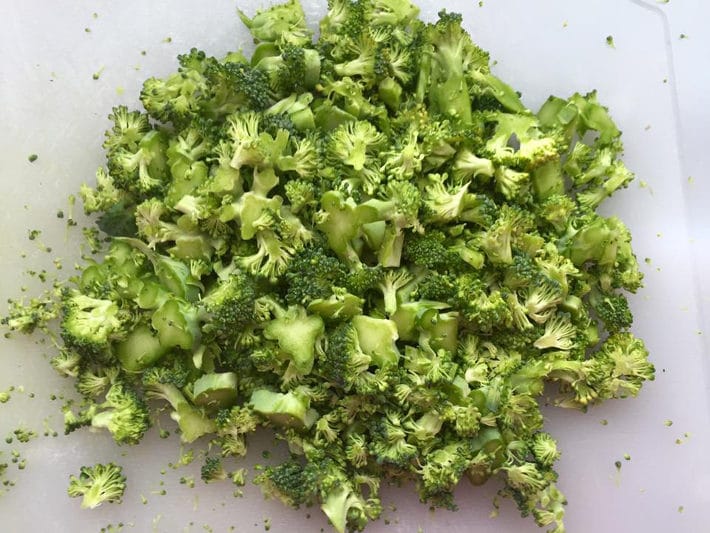 - 400 g Brokkoli mit dem Messer klein schneiden (siehe Bild)